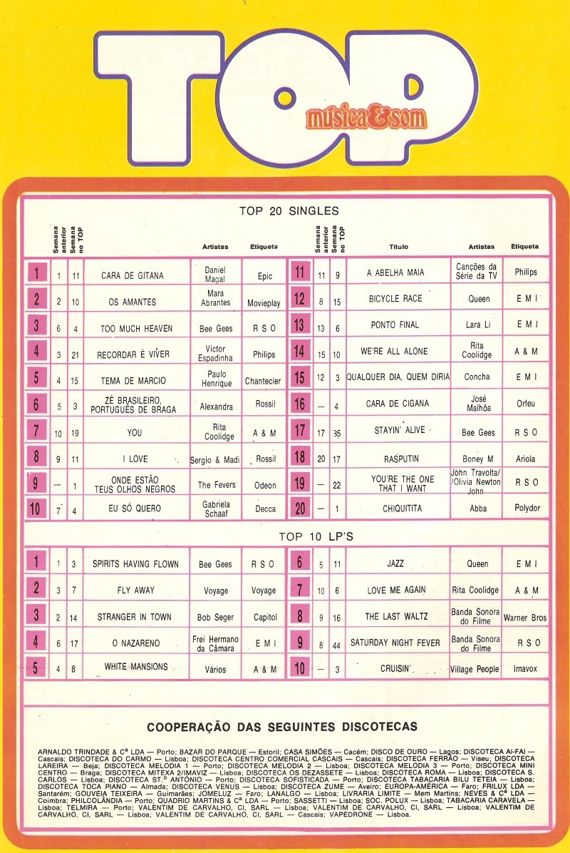 Numa altura em que não havia uma contagem oficial de vendas de discos em Portugal a revista Música e Som em colaboração com dezenas de lojas publicava regularmente uma lista dos discos mais vendidos nas mesmas.