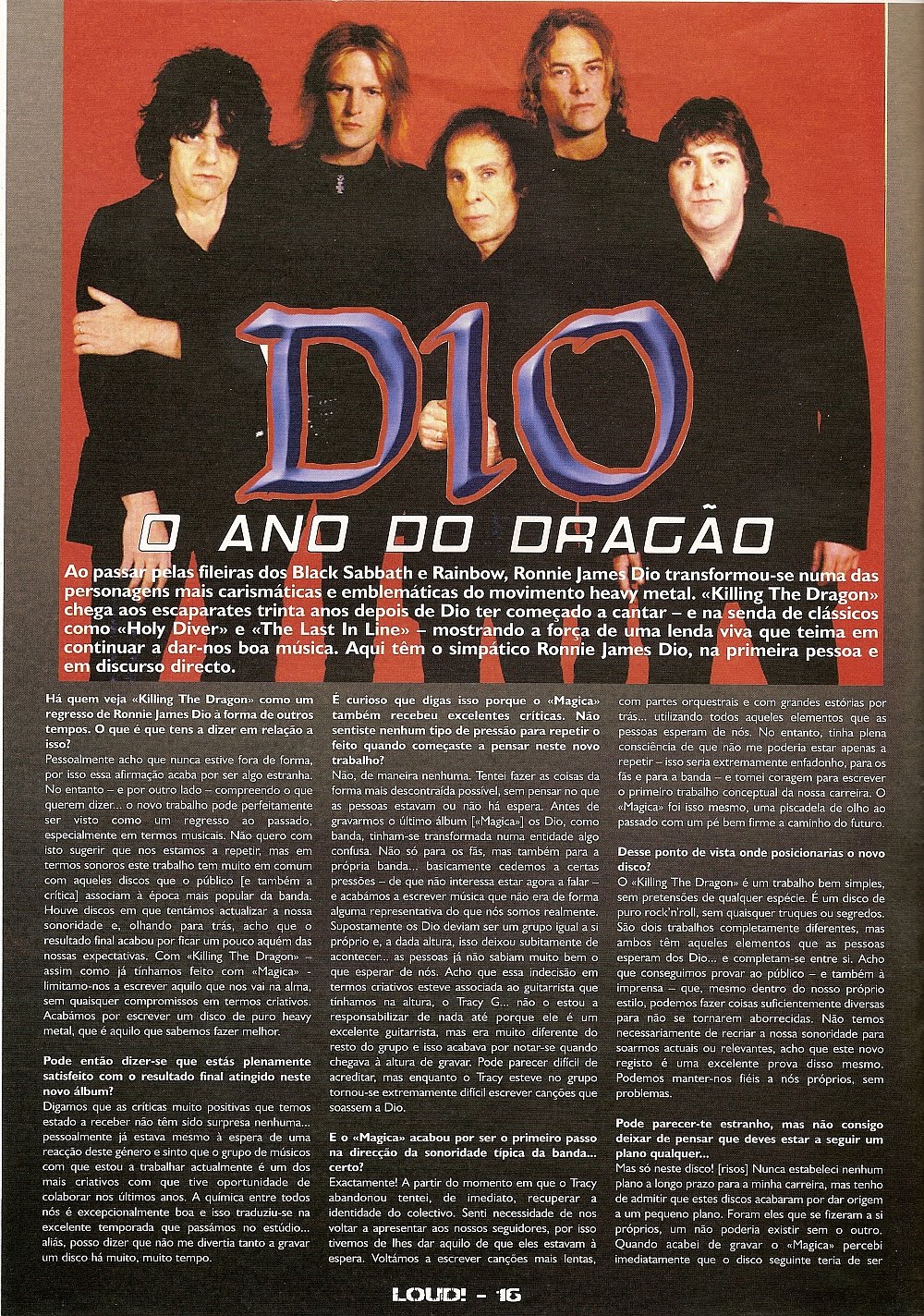 No Rock no Sótão é tempo para recuperar uma entrevista de Ronnie publicada na revista Loud de 22 de Agosto de 2002, por altura do lançamento do álbum Killing The Dragon.