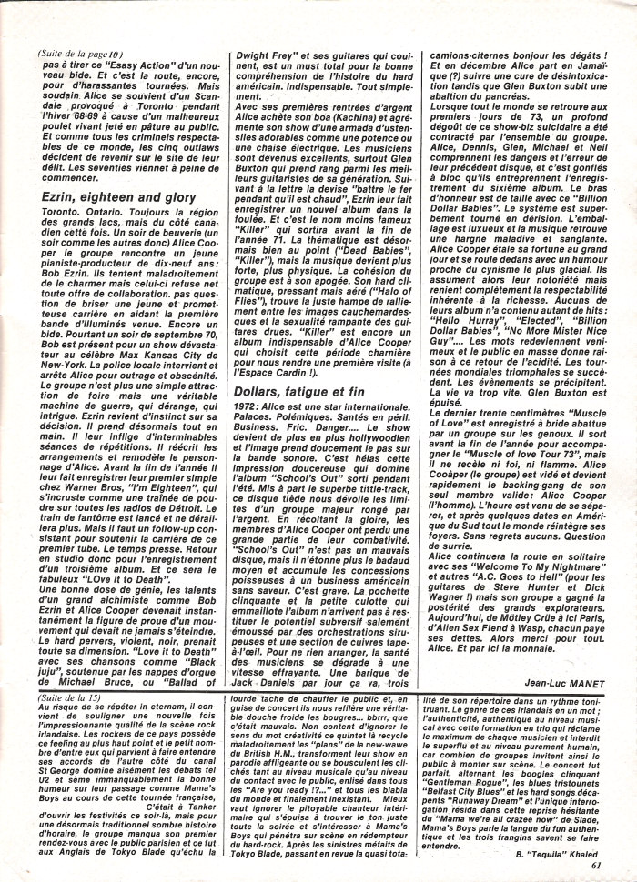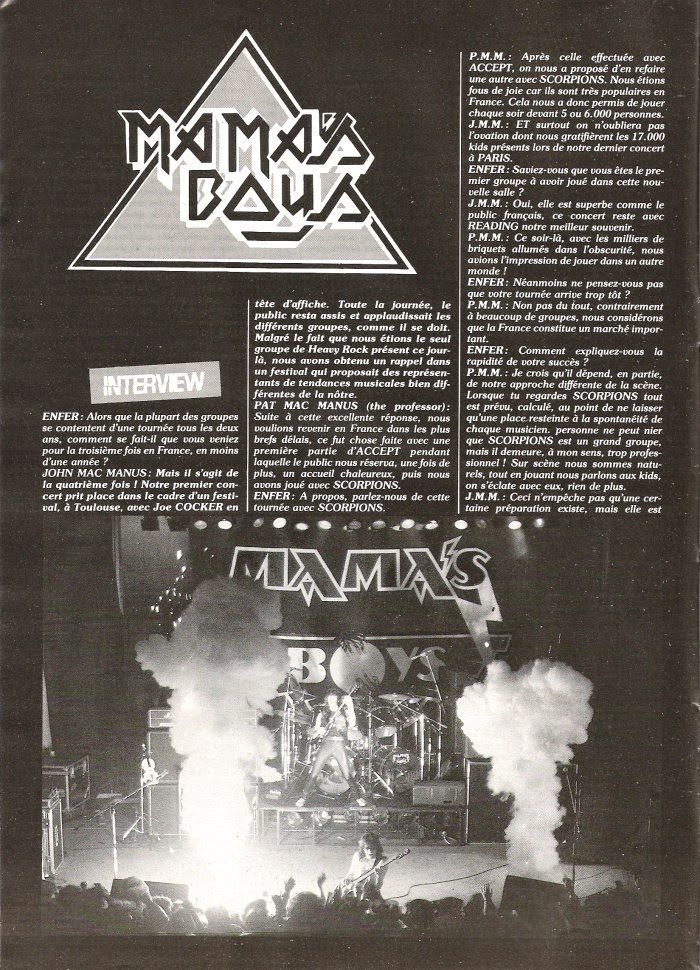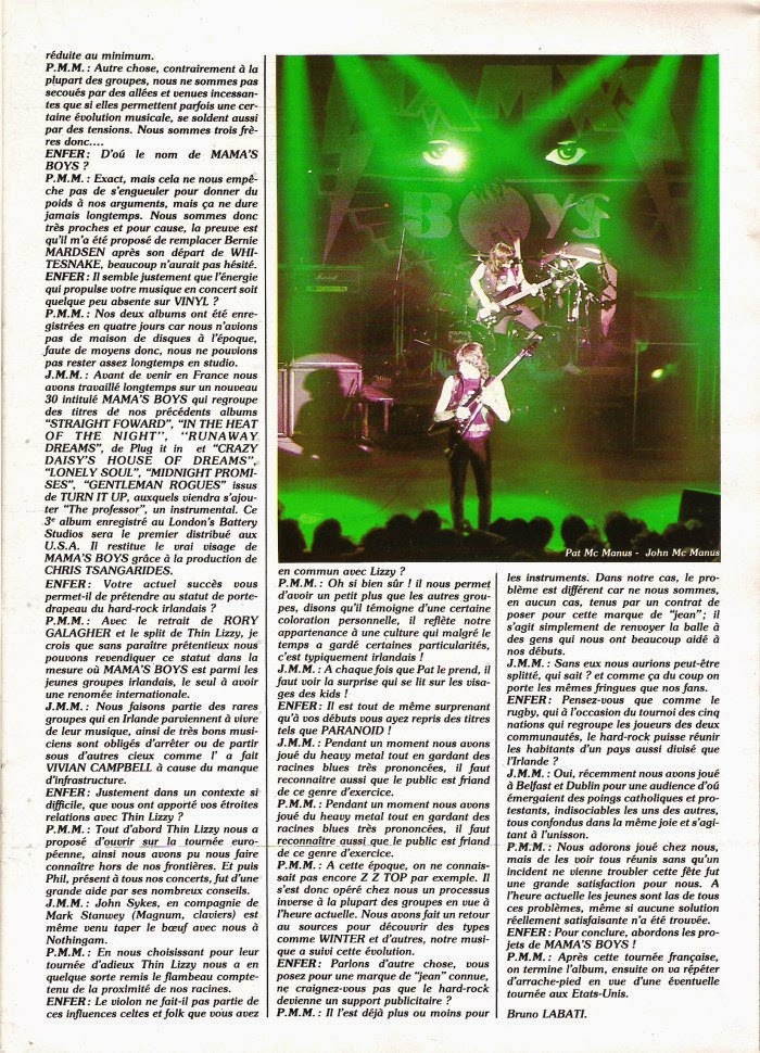 Ainda com a Enfer Magazine nº14 como presença, desta vez destaco um artigo biográfico sobre Alice Cooper e uma entrevista ao conjunto Irlandês Mama's Boys, de boa memória mas curta duração.
