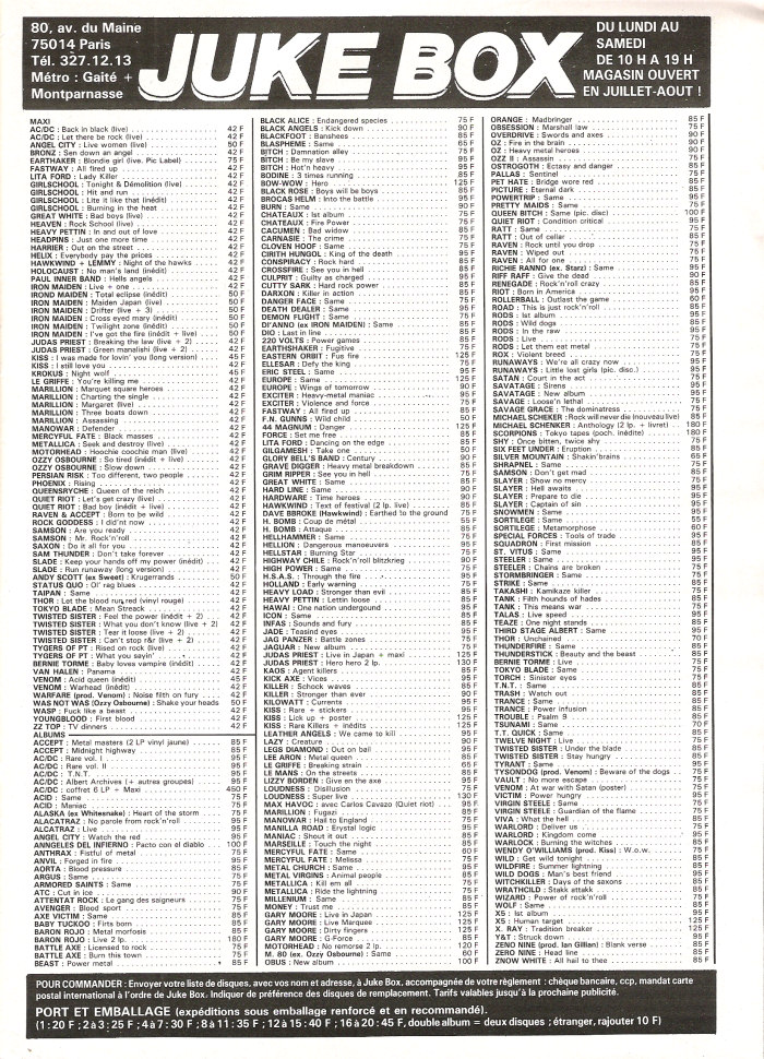 A Juke Box estava (desconheço se ainda existe) em Paris e tem alguns maxi-singles sendo os restante itens álbuns. Lembro-me que esta loja era presença constante nas revistas do género desta época.