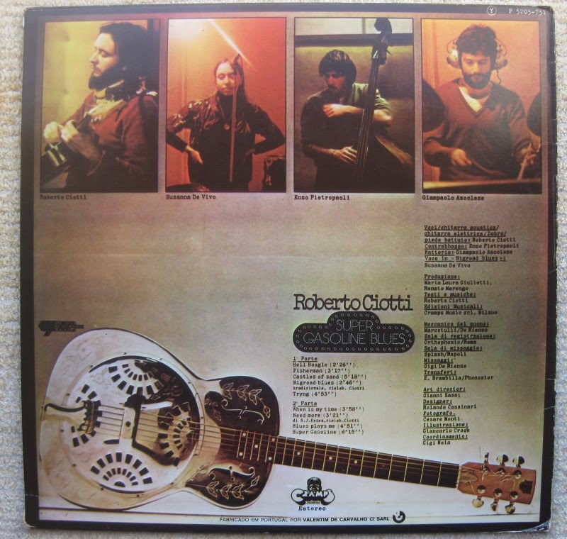 Super Gasoline Blues foi o primeiro disco deste bluesman Italiano, editado originalmente em 1978 e por mim comprado já no ano de 1987, provavelmente arrumado no final da caixa de discos dedicada à letra R de uma loja de discos em Almada ou Lisboa.