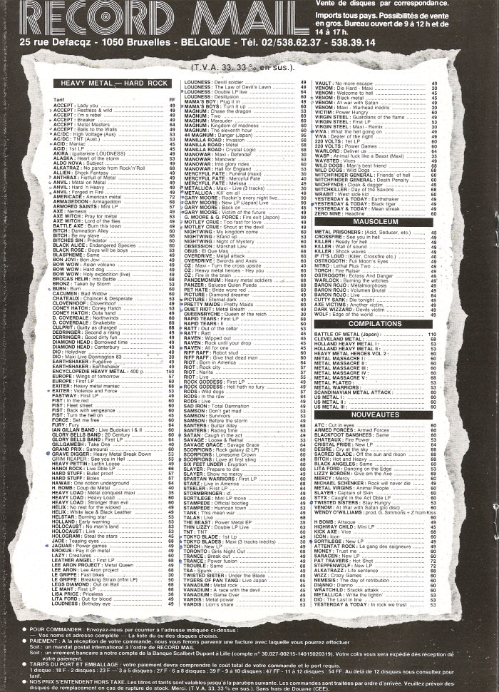 A Record Mail era uma loja sediada em Bruxelas e os seus preços estão em Francos Belgas.